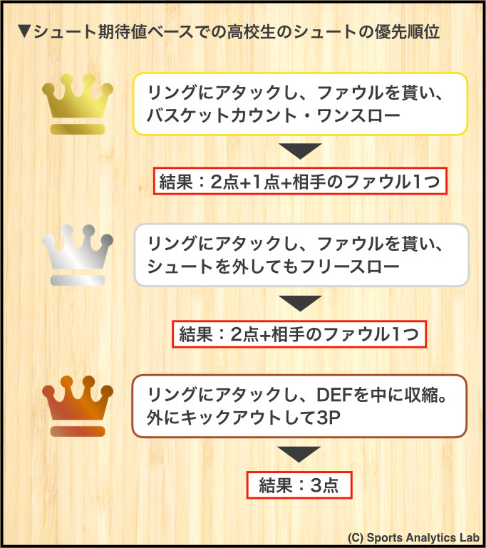 ▼高校生のシュートの優先順位