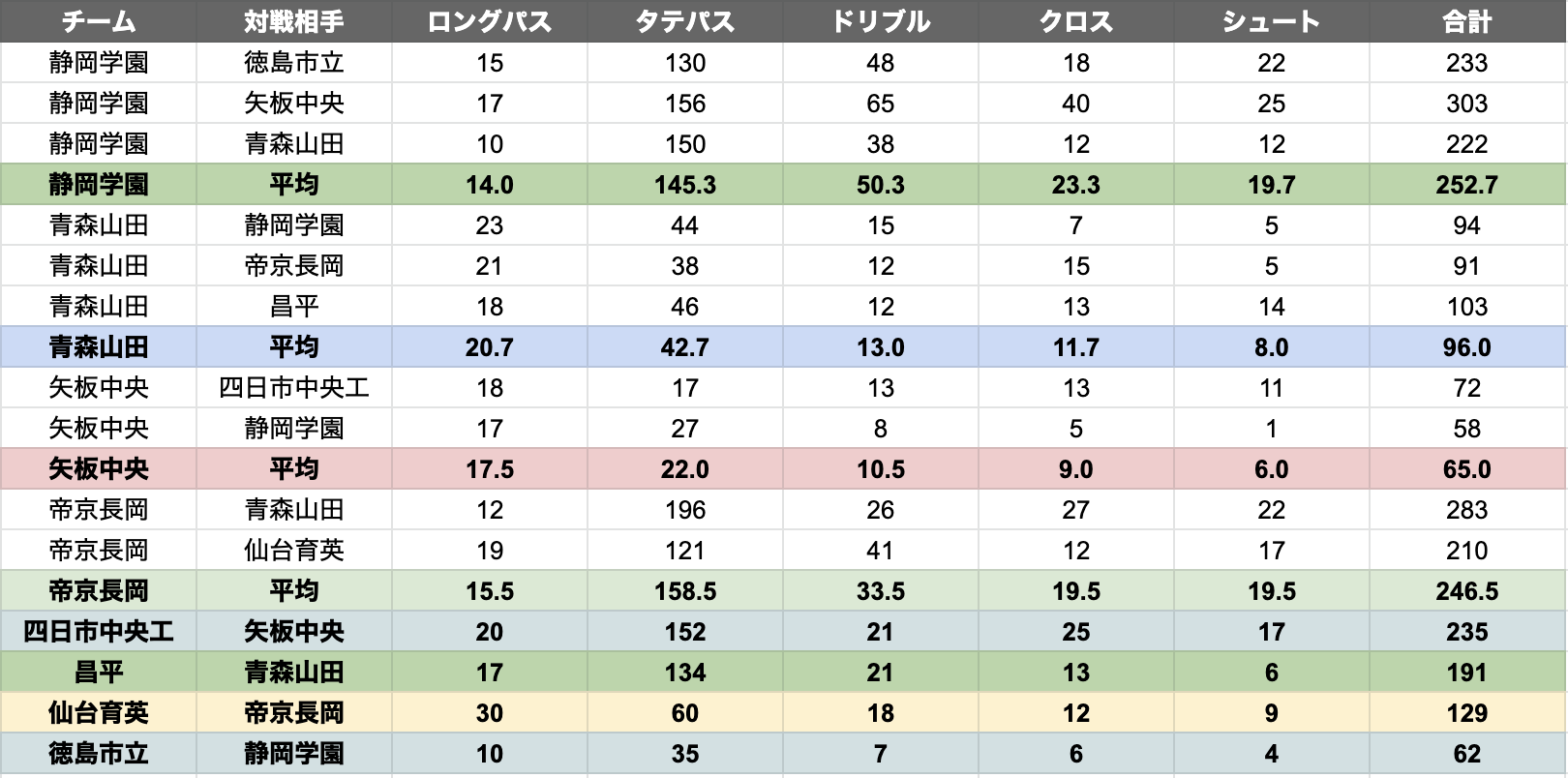 それぞれのチームが各試合をどのようなスタイルで戦っていたのか?を中心にデータから見られる特徴などについてまとめてみました。