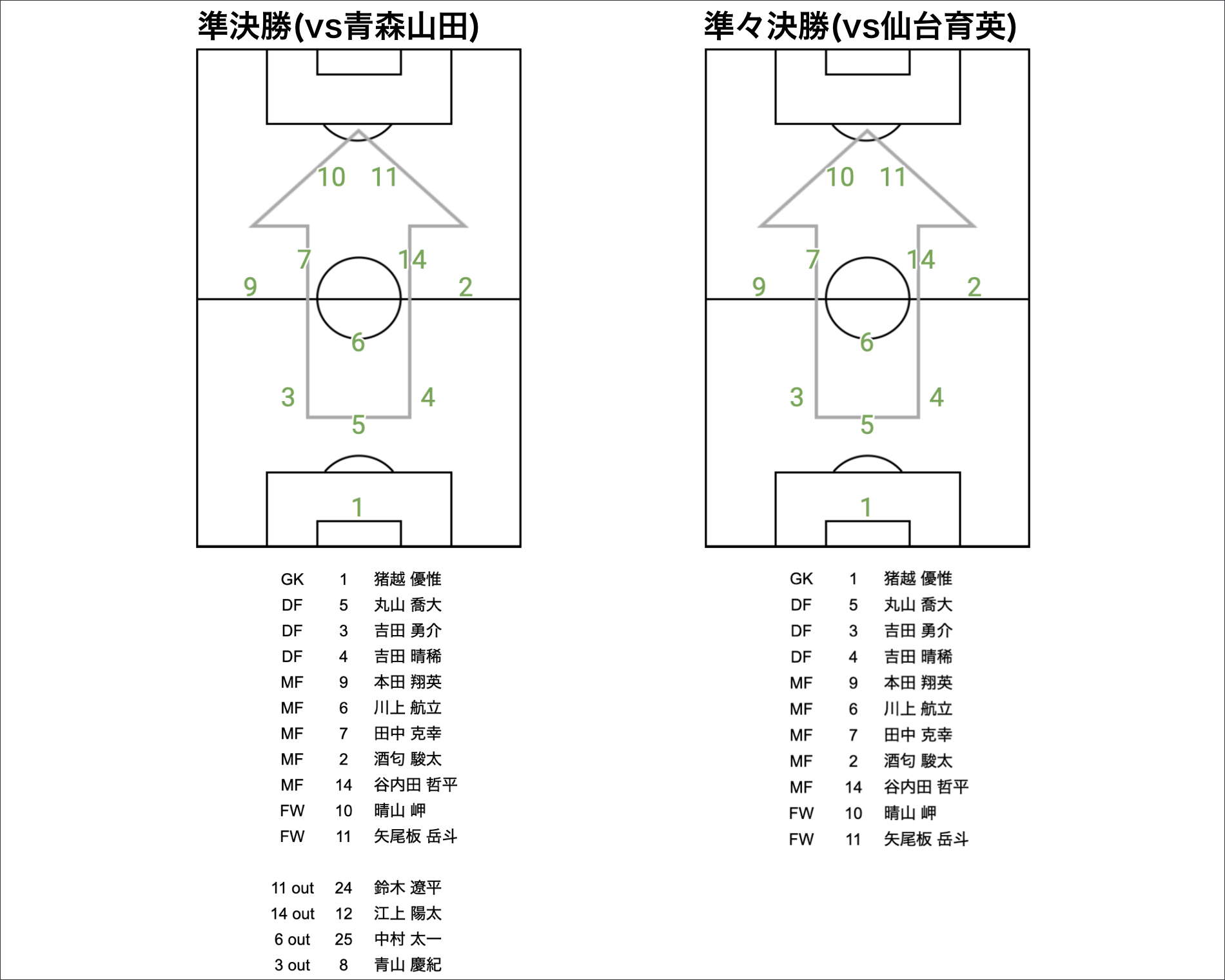 準々決勝、準決勝とシステム4-4-2でスターティングメンバーは2試合同じ。