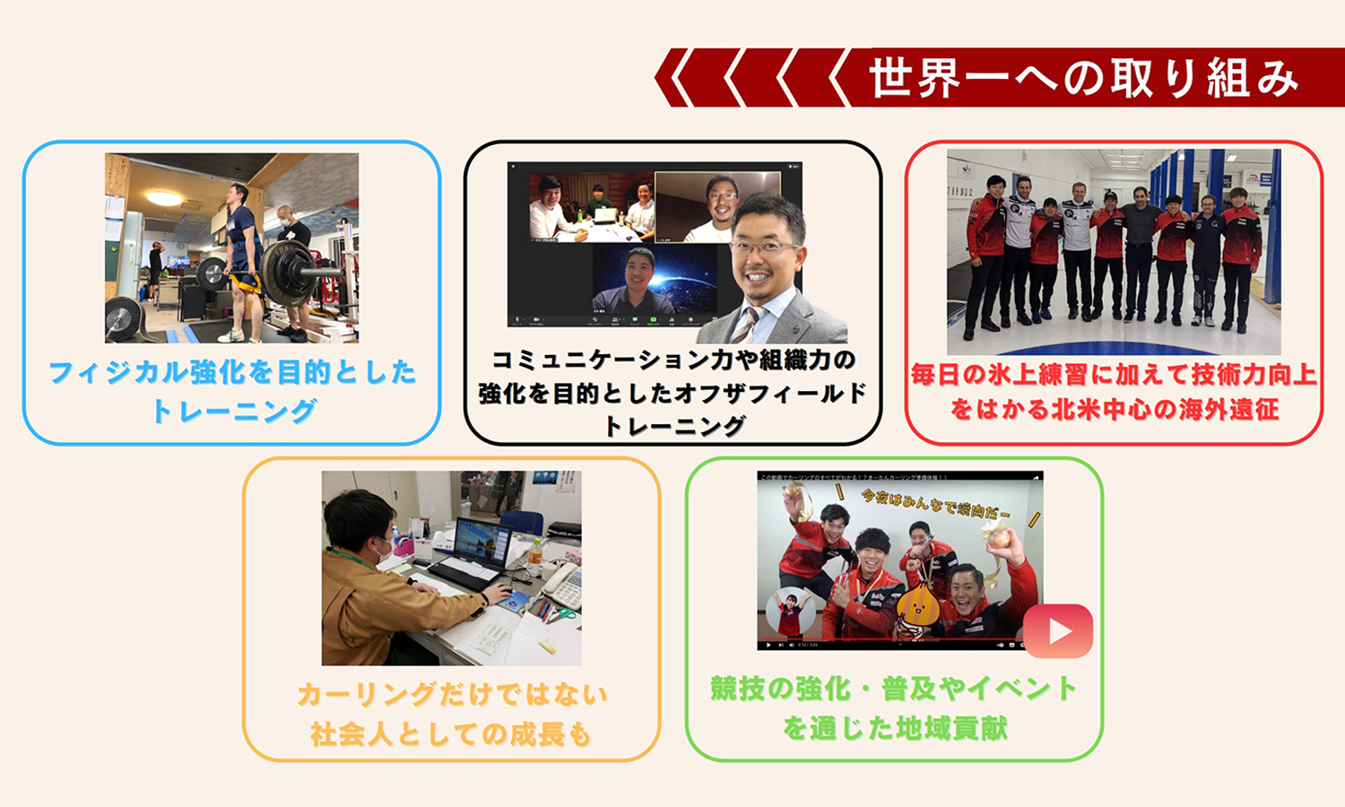 私は「トレーニング」と呼んでいますが、月に1回から多くて2回の頻度で、事前にきっちりと日付を決めた上で、1回あたり2~3時間のオンラインのトレーニングを重ねていきました。カーリングという競技に直結した内容ではなく、ヒューマンスキルとしてのコミュニケーション能力を上げ、仲間同士でどう本音を言い合えるようになるのか、嫌なことを言われてもどのように受け入れるのか、に注力して毎回のトレーニングを進めてきましたね。