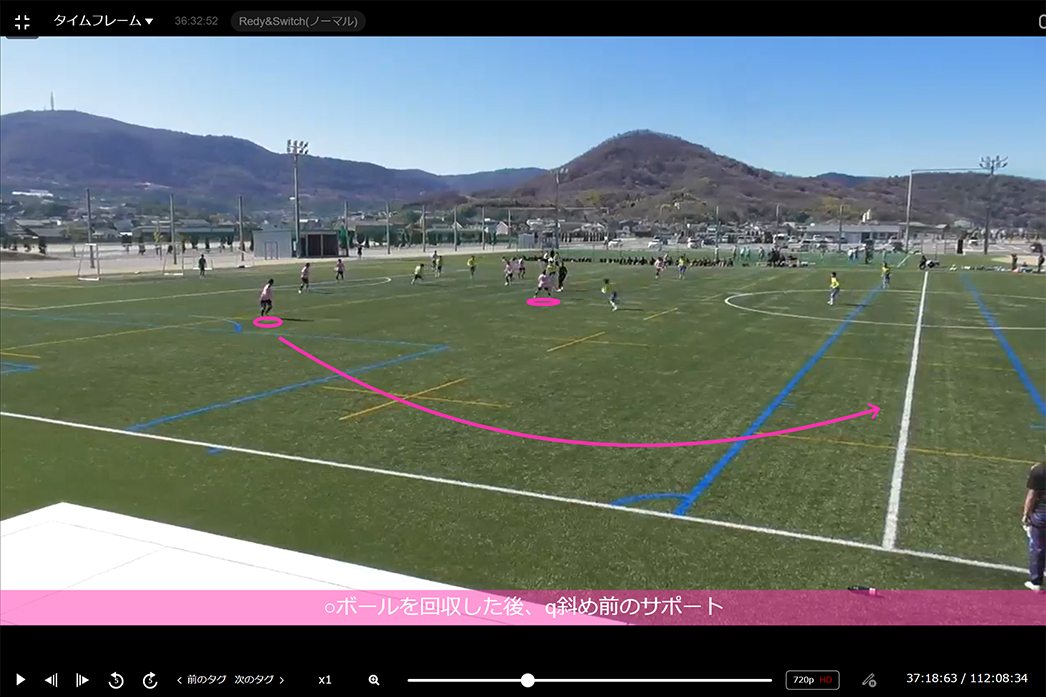 映像の撮影は選手がしています。そのあと私含めたスタッフもしくは選手が動画をアップロードし、期日を決めてタグ付けをしていくという流れです。ちなみに昨年は、リーグ戦及び試合に向けてしっかり活用できるようになってきて、選手や谷監督から『今日の映像のアップはまだ?』と催促されるくらいです(笑)