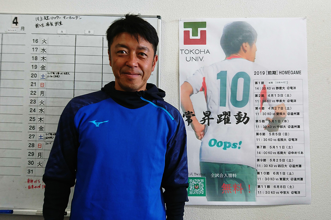 2013年1月に常葉大学サッカー部の監督に就任してから7シーズン目を迎える澤登監督。インタビューの場には山西コーチも同席し…