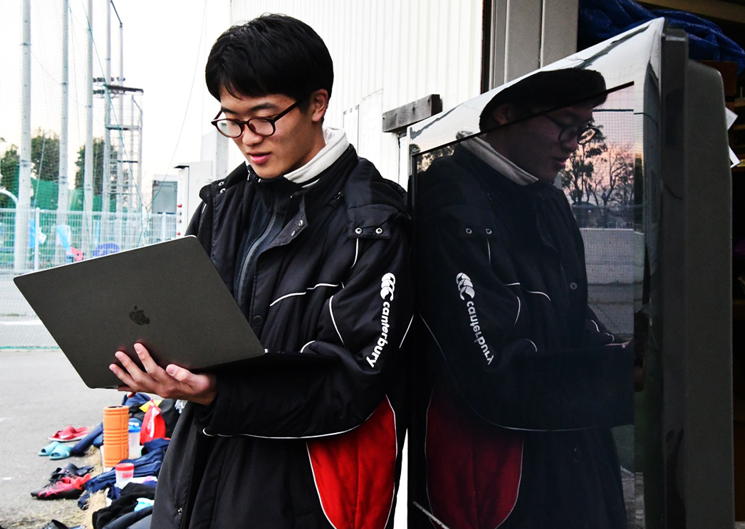 ラグビーのプレー経験は小学校まで。中学と高校では競技から離れ、立教大学に入学。大学1年生でプレーヤー復帰を試みるも大きな実力差を感じて断念。ただラグビーにもう一度関わりたいという強い想いから、現在は立教ラグビー部のアナリストとしてチームを支える。
