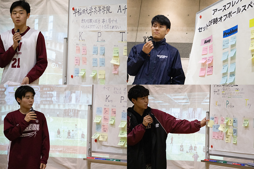 事前に部員全員が集まってる中で、SPLYZAスタッフから分析会のやり方やKPT法について説明をしていただきましたし、前回のサッカーで行われたSPLYZA CUPの例も示してもらっていたので、選手たちはイメージ がつきやすかったようでした。