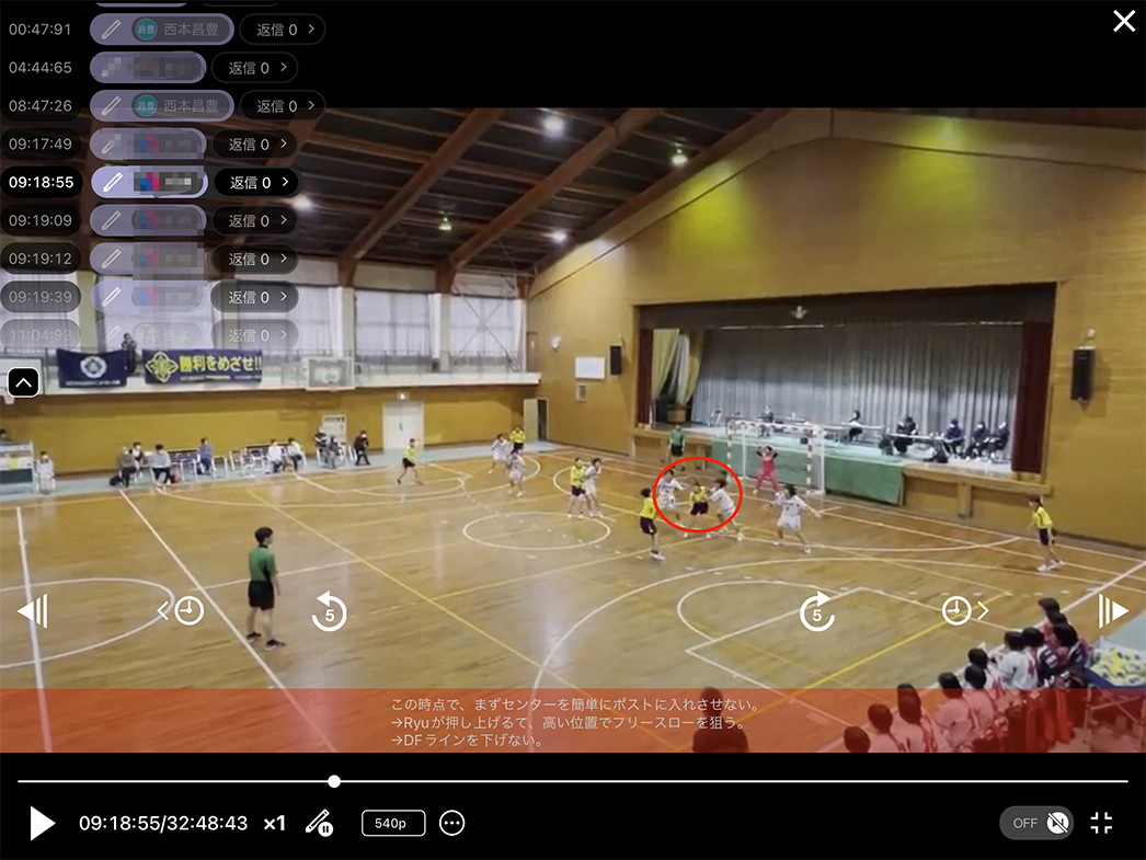 そうですね、タグは生徒だけですが、「このプレーに対してはこうした方がよかったかな」とか「こんなプレーの選択肢もあるかな」ということを書き込むことは時々やります。