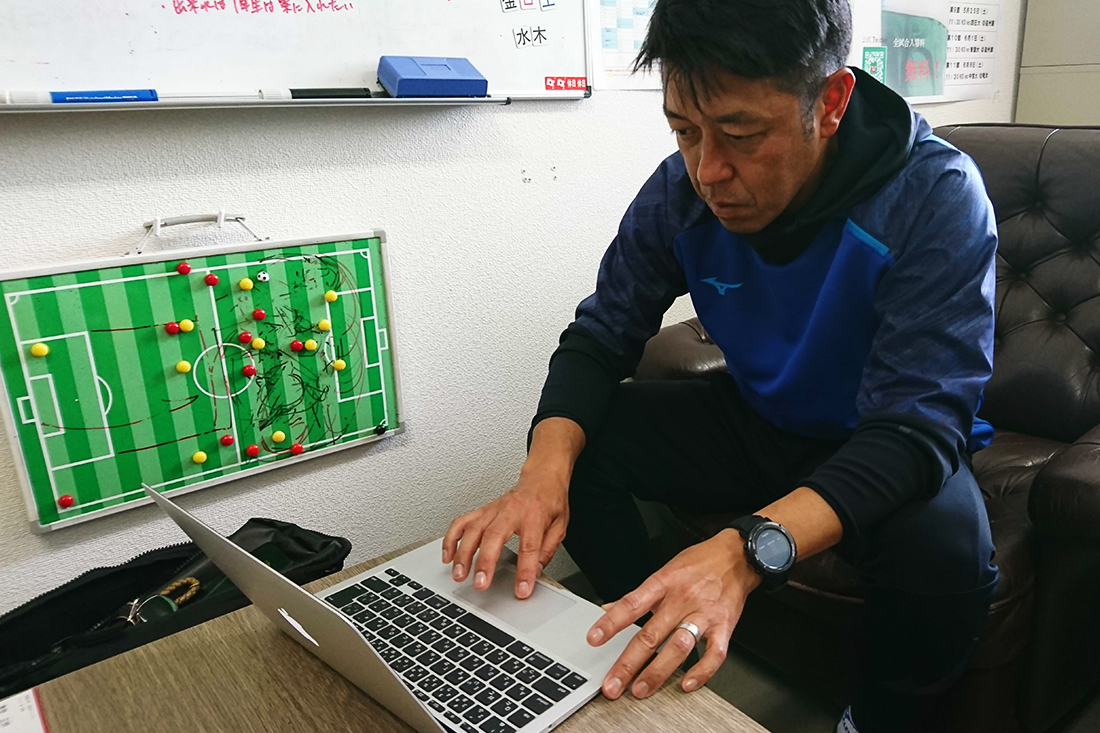 私の学生(東海大学)時代にもサッカー部に分析班はあって、当時はピッチをマス目上に分割して「相手のこのプレーヤーはここでボールを持ったらここに動いて…」って撮影した映像を観ながら鉛筆でずっとノートに線を書いていたんです。今でいうところ選手のトラッキングですよね。そうやってアナログでコツコツ分析すると、おおよその傾向は出るんですよ。この選手は右サイドに流れやすいとか、左サイドから攻めてくるとか。それをやってる分析班は本当に大変だったと思うんですけど、特に大会期間中なんかは寝ずに彼らがやって取得したデータを、我々が試合前のミーティングで確認して、それで試合に臨んでいました。