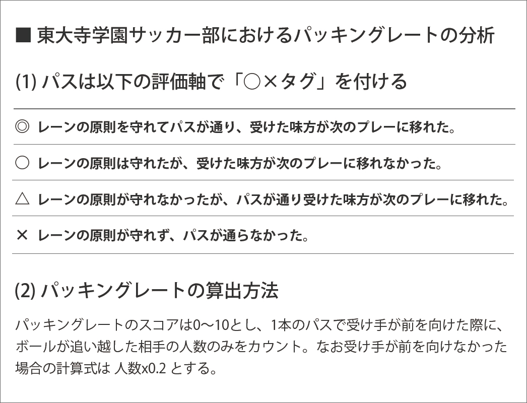 ↓東大寺学園高校サッカー部でのパッキングレートを用いた分析