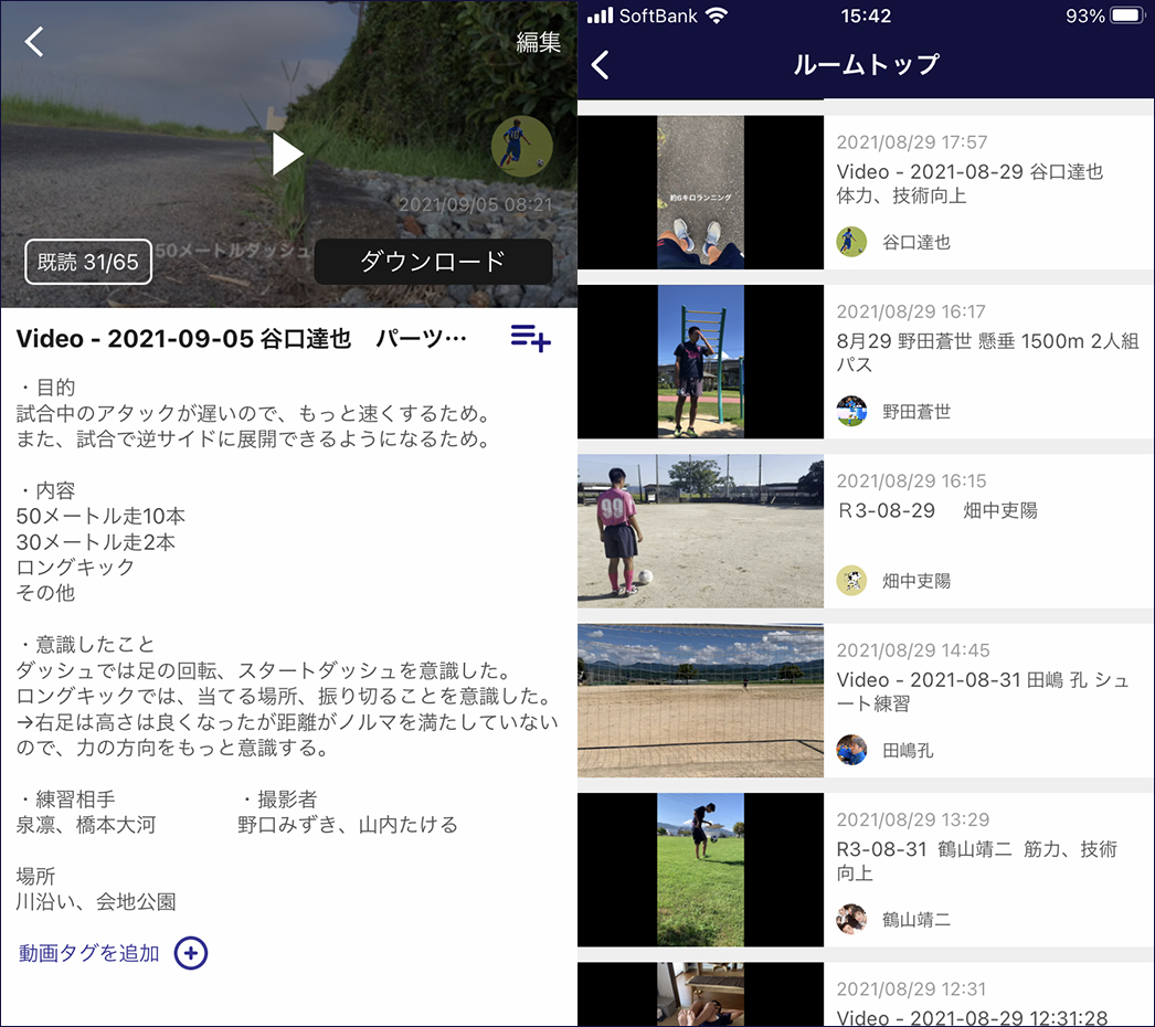 最初は紅白戦、練習試合、公式戦をメインに共有していました。ただ、ある時から練習映像も共有してみようと思いました。