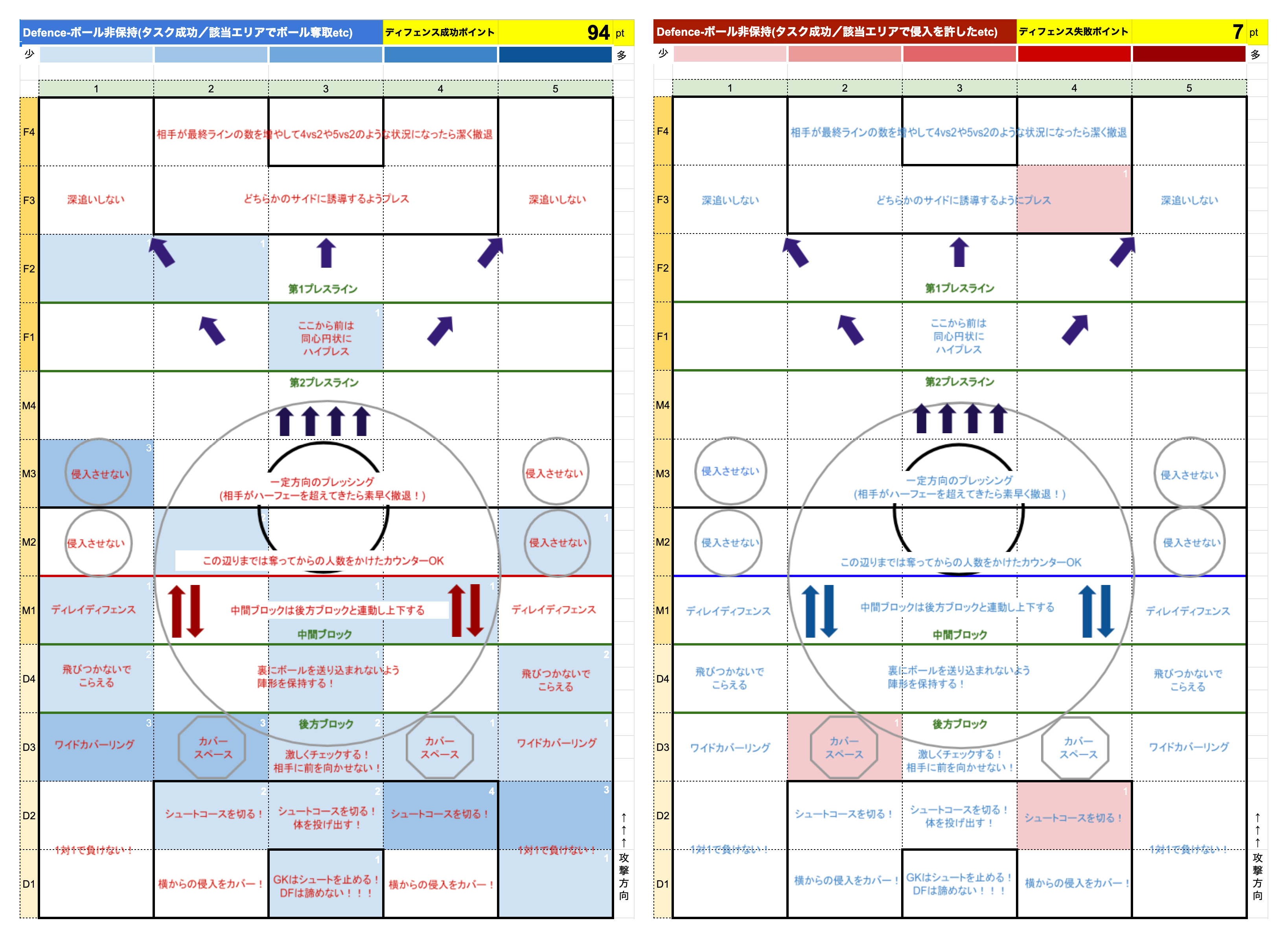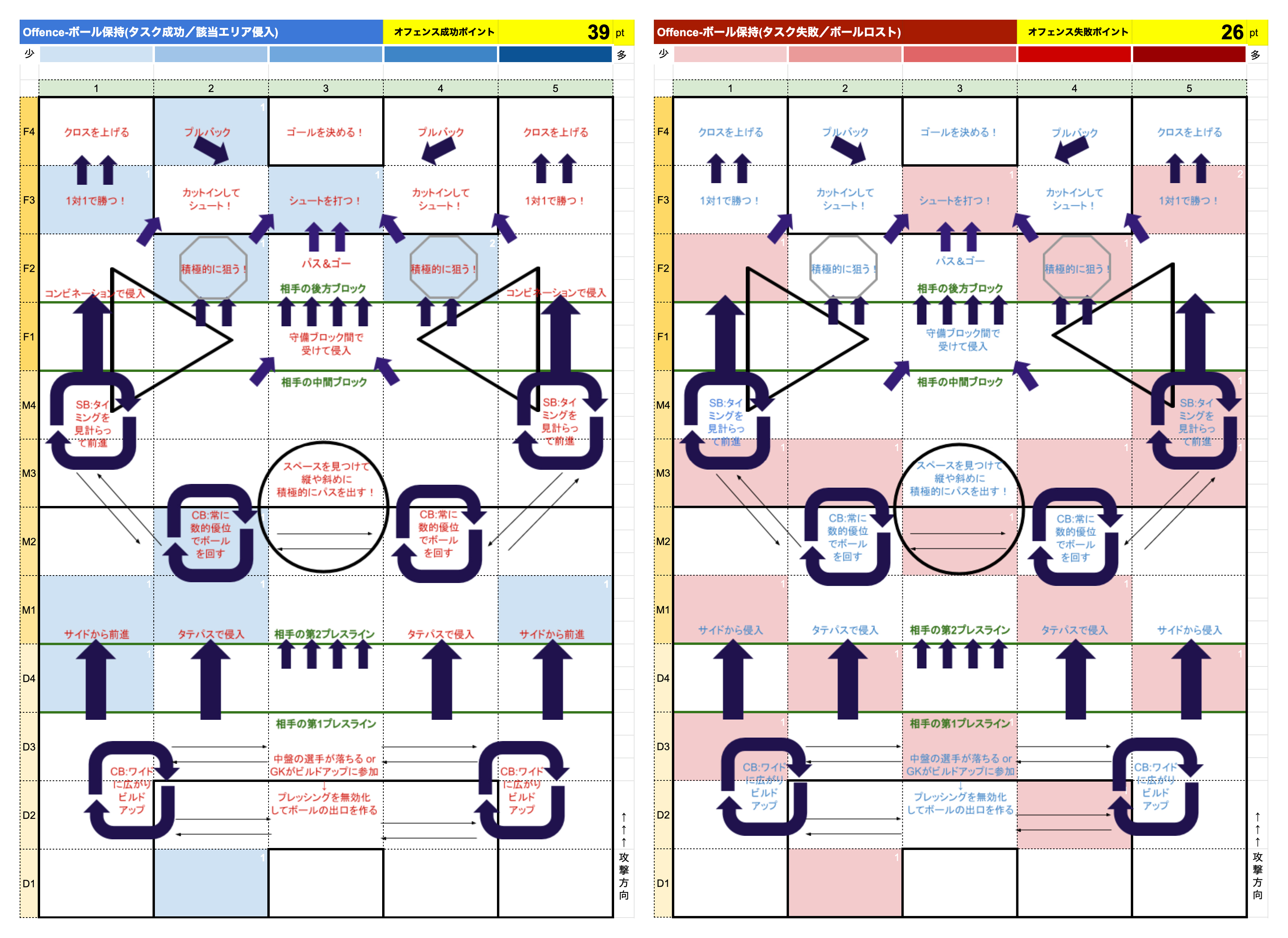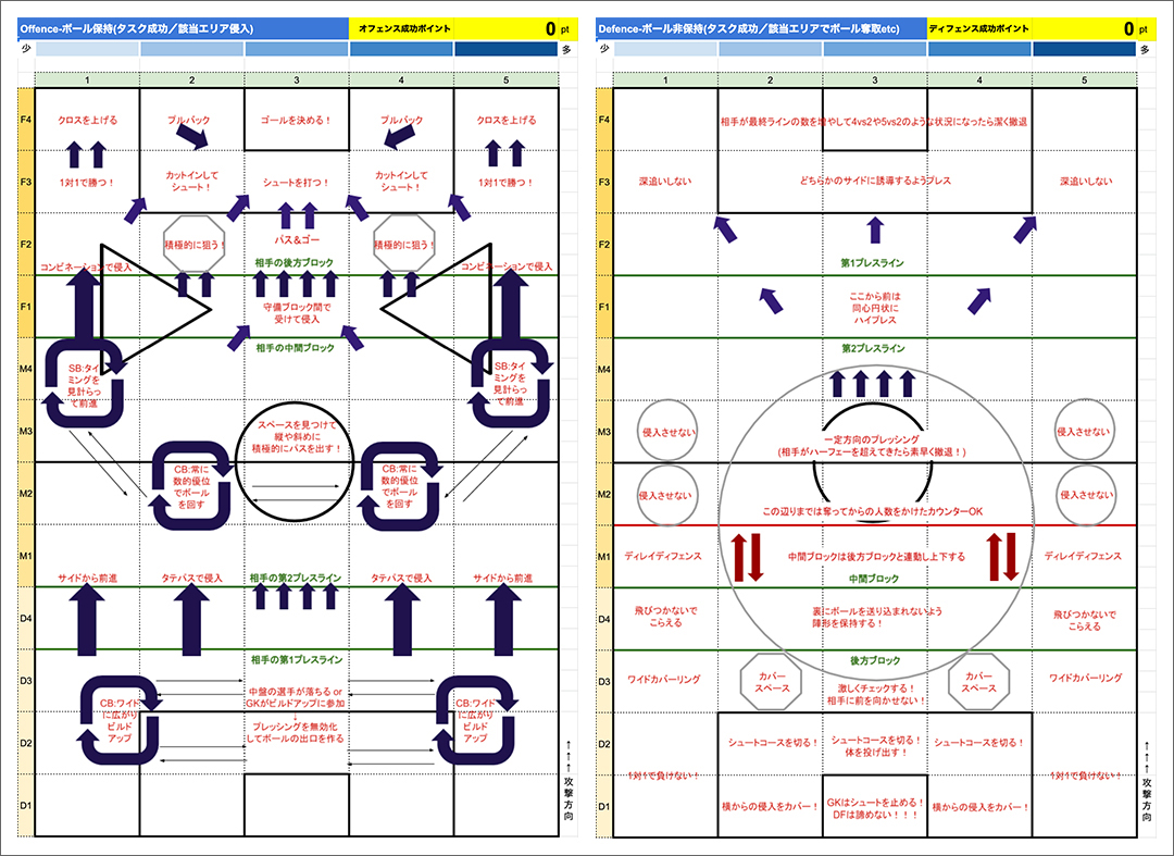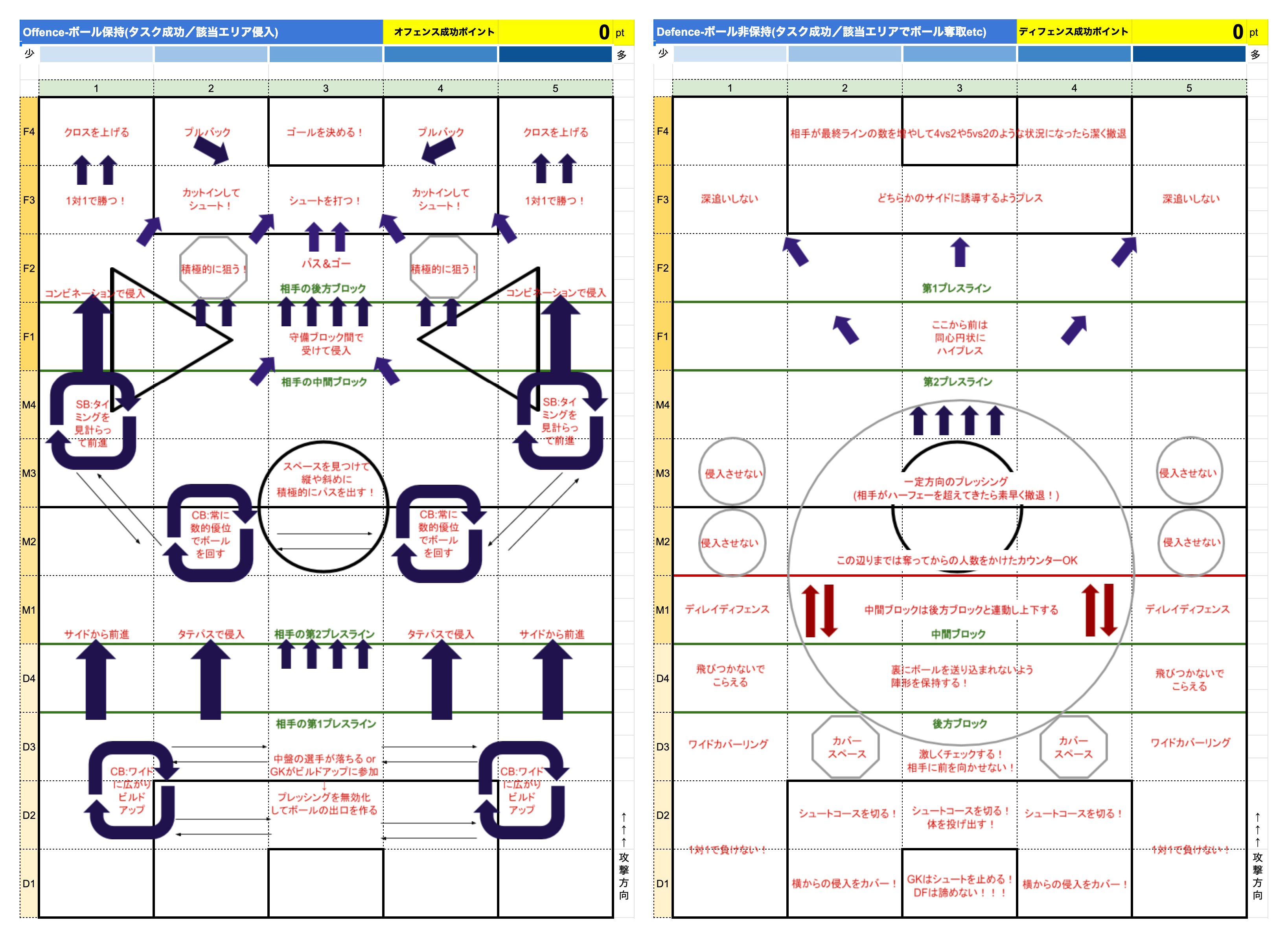 ↓以下、攻守のタスクをフィールド上に配置した図となります。画像をクリックすると拡大します。