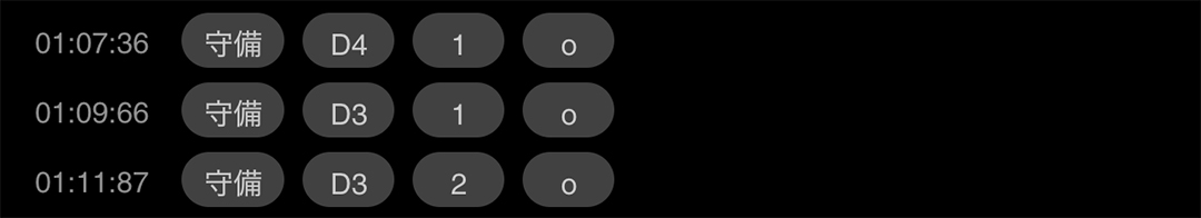 このようにそれぞれの局面を評価、分析し試合を通してタイムタグを付けていきます。