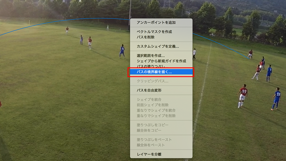 (4)パスの上で右クリックして「パスの境界線を描く」をクリックします。