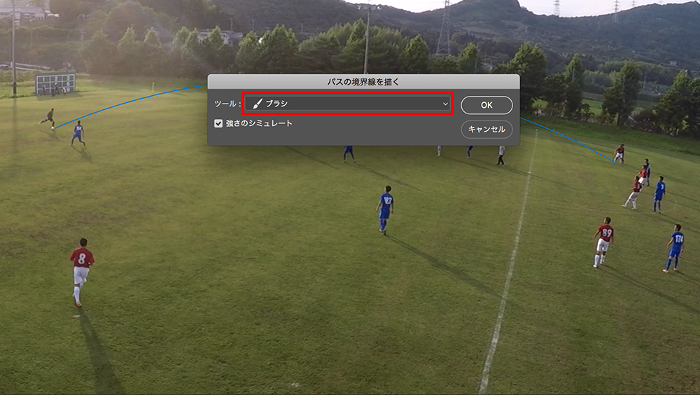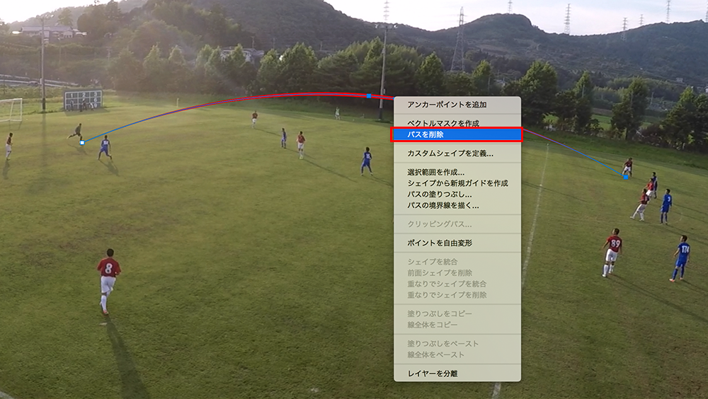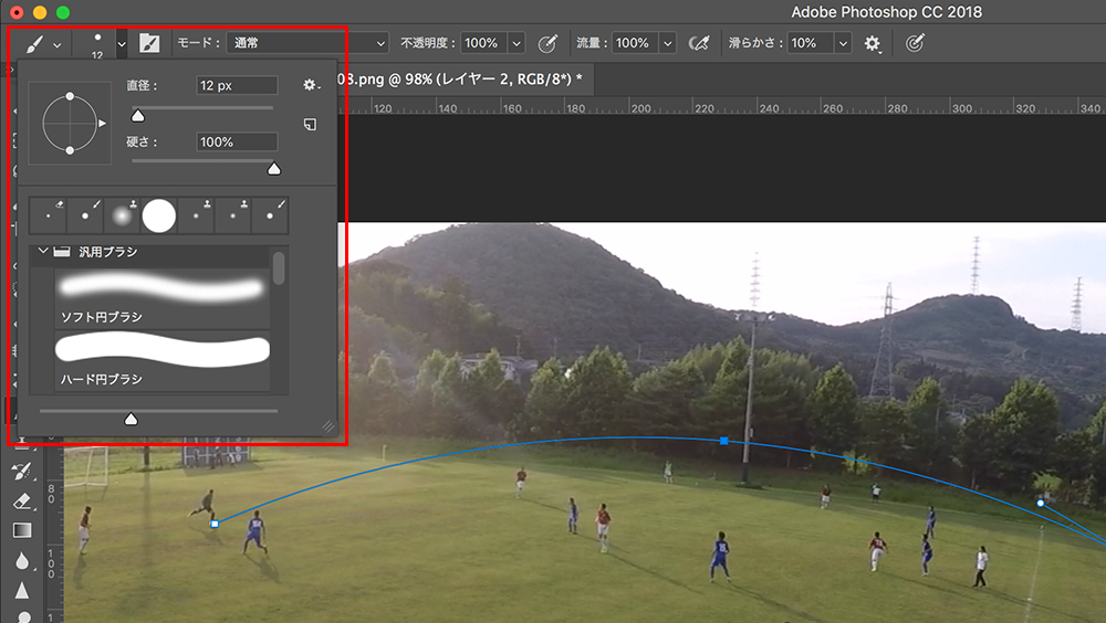 サッカーを題材に描画ツールの操作方法を覚えようシリーズ!第1回目は何かと便利な「ペンツール」を使ってロングフィードの軌道を描いてみます。(※この記事ではAdobe Photoshop