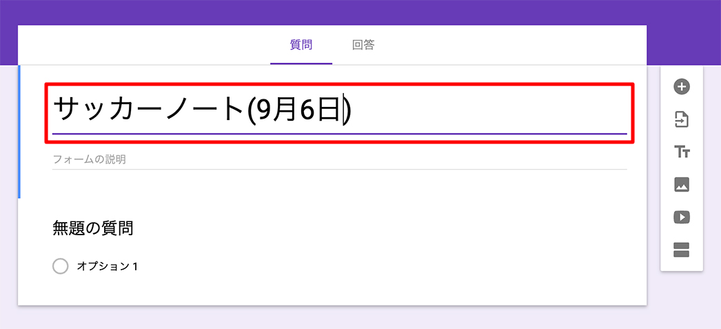フォーム作成画面が表示されるので、まずはタイトルを入力しましょう。