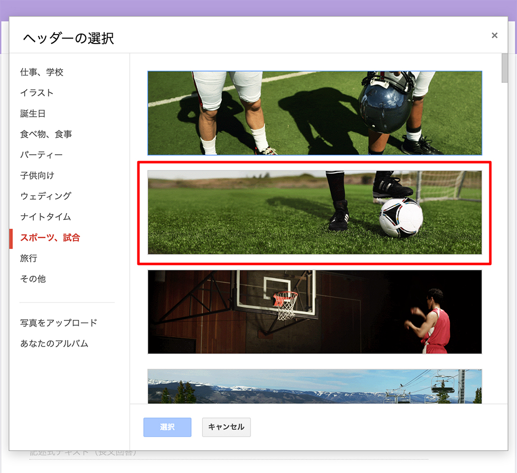 せっかくなので、サッカーの画像を選んでみましょう。