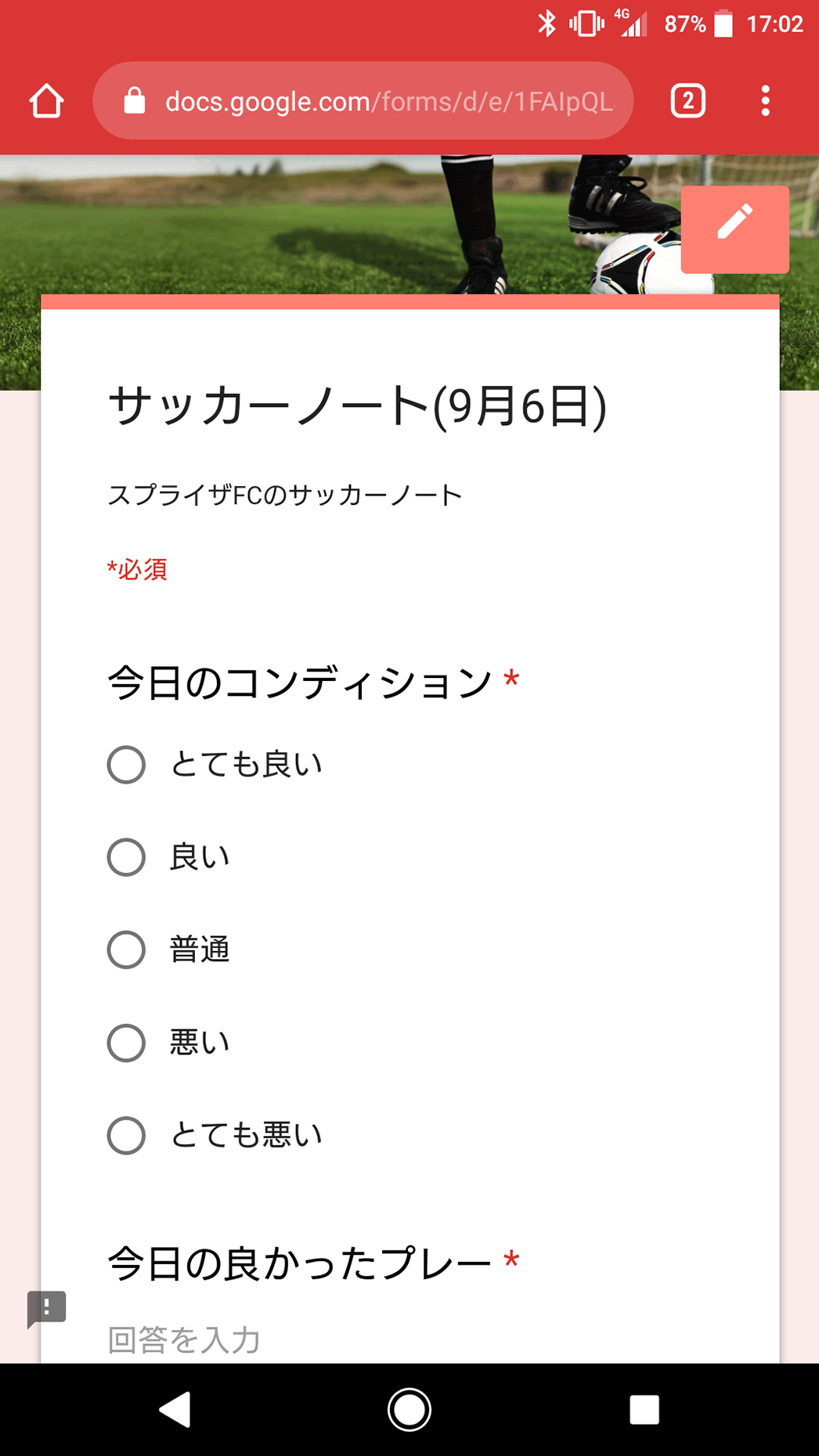 【TIPS】無料で使える「Googleフォーム」を活用してチームのサッカーノートを管理しよう!