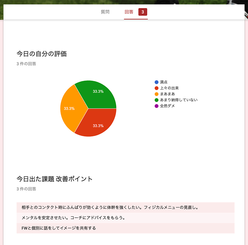 以上が「Googleフォーム」を用いたサッカーノートの運用・管理方法となります。こちらをベースにチーム独自の使い方を編み出していただければと思います。