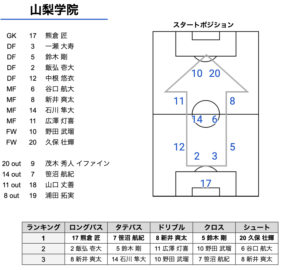 第99回全国高校サッカー選手権大会スタッツレポート 準決勝:帝京長岡 vs 山梨学院