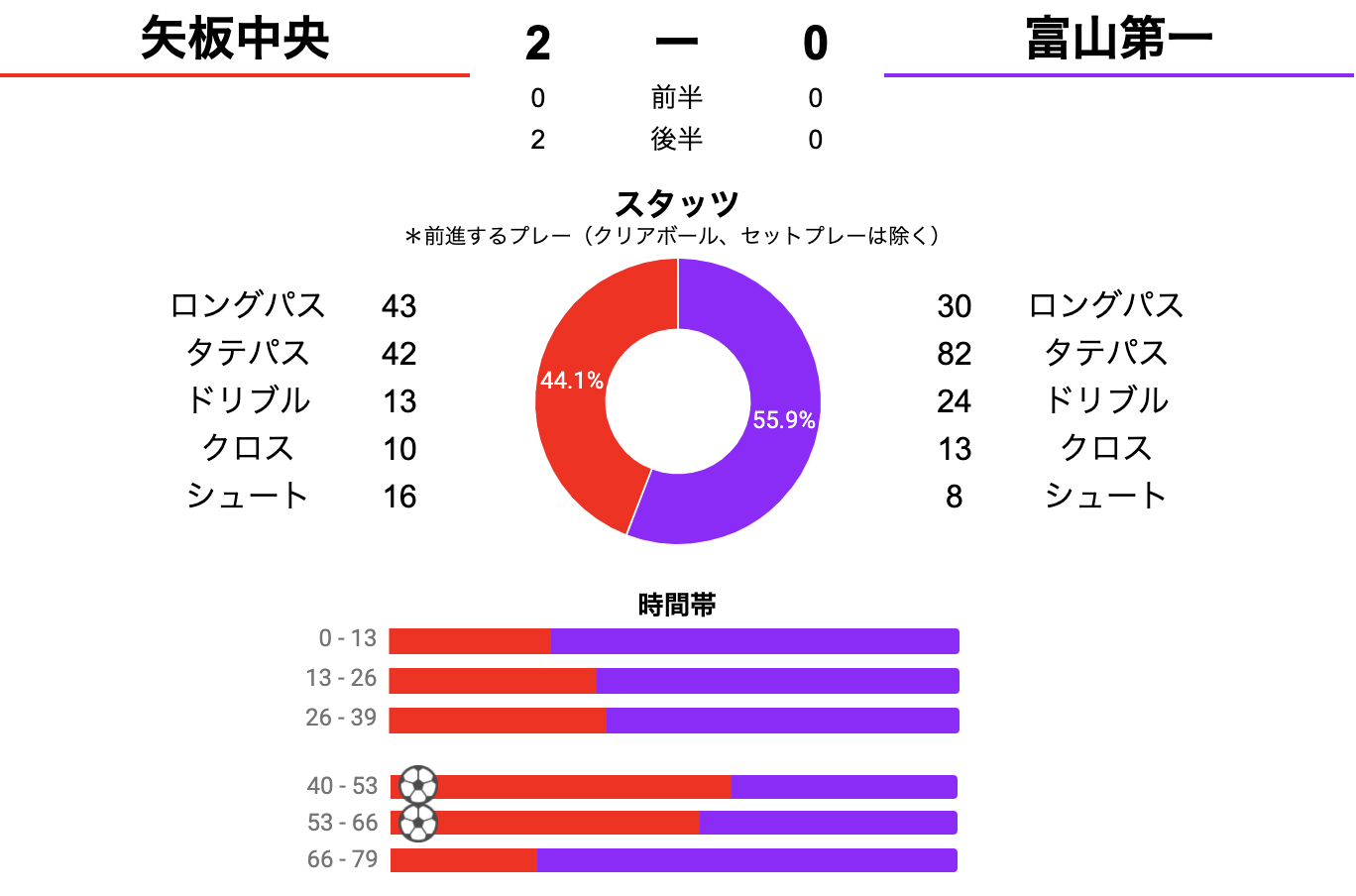 第99回全国高校サッカー選手権大会スタッツレポート 準々決勝:矢板中央 vs 富山第一