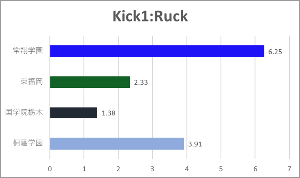 そのため、キック:ラック=1:6.25と4チームで最も大きく、ボールを保持しながら自チームに流れを呼び込みたい狙いがあったと推測できます。