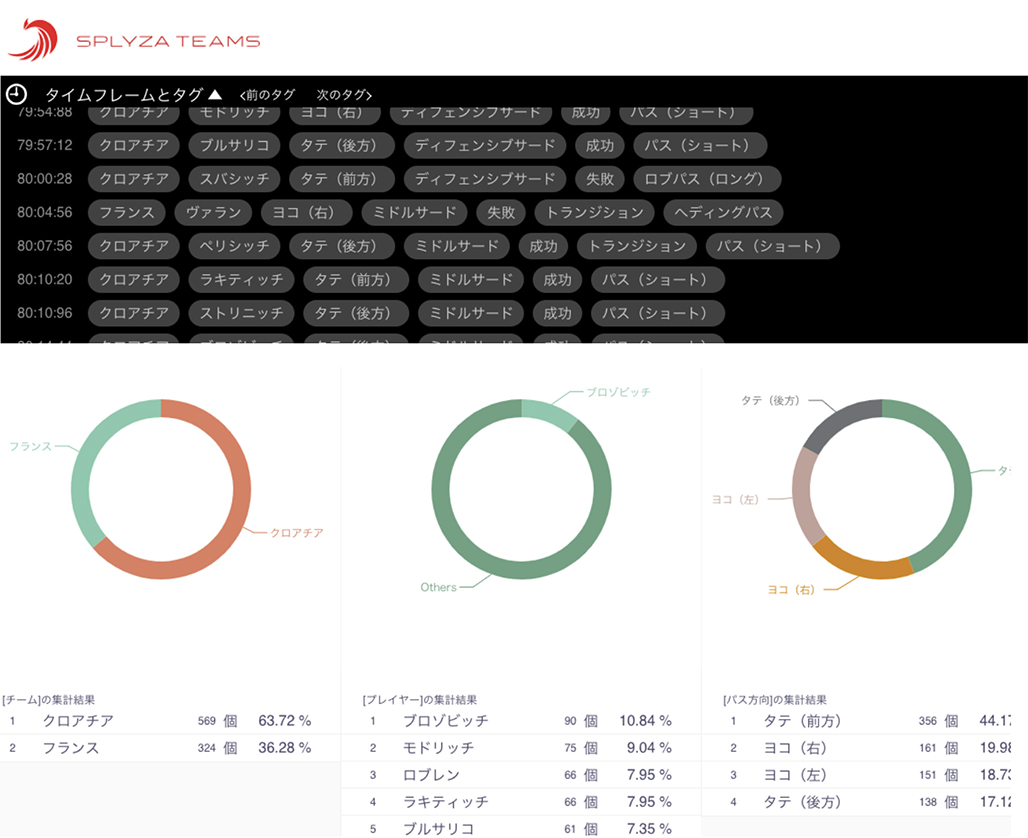 今回はSPLYZATeamsを使い、パス全部にタグ付けしたデータから見えてくるチーム戦術について書いていきます。2018年W杯決勝のフランス vs