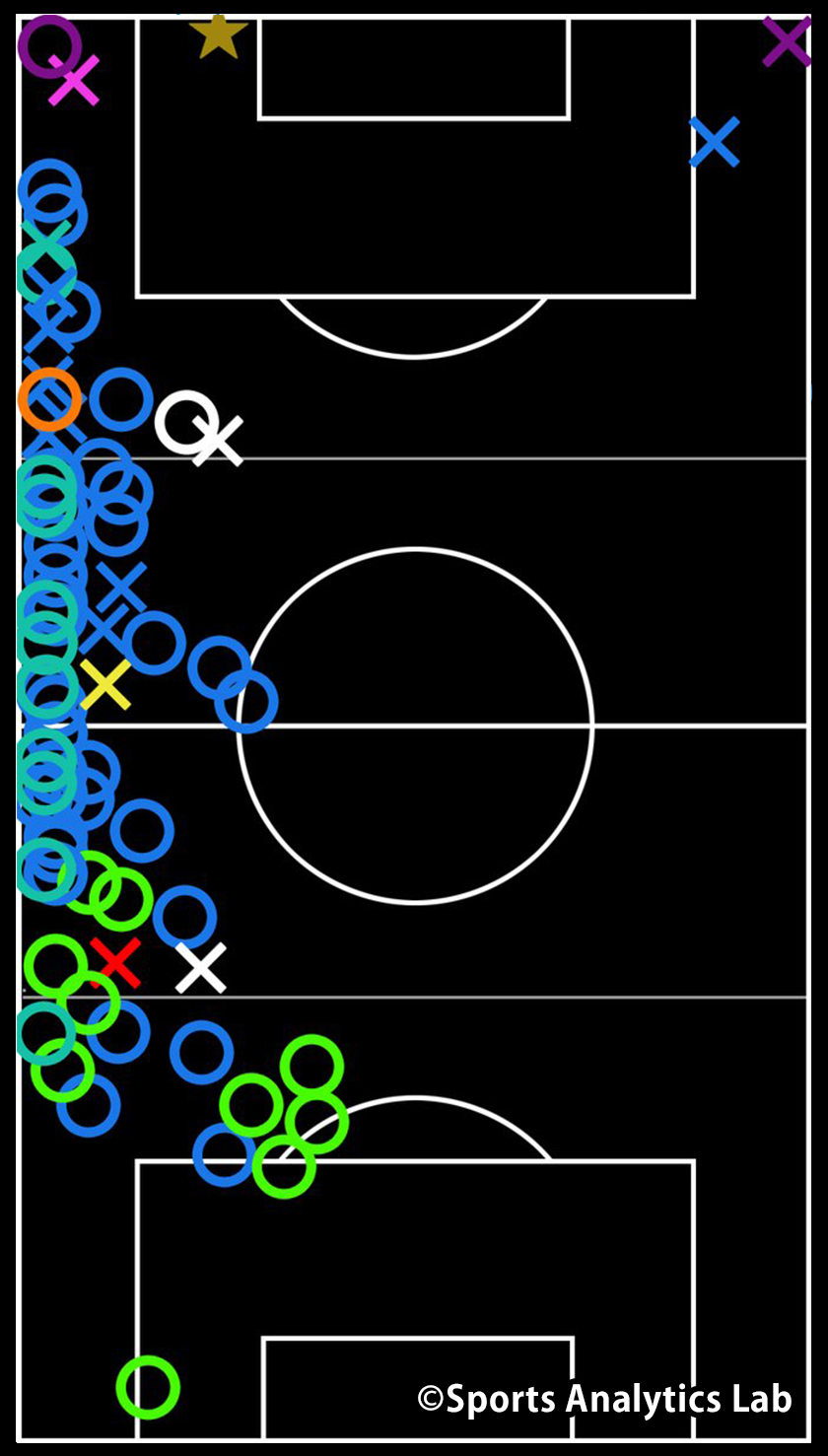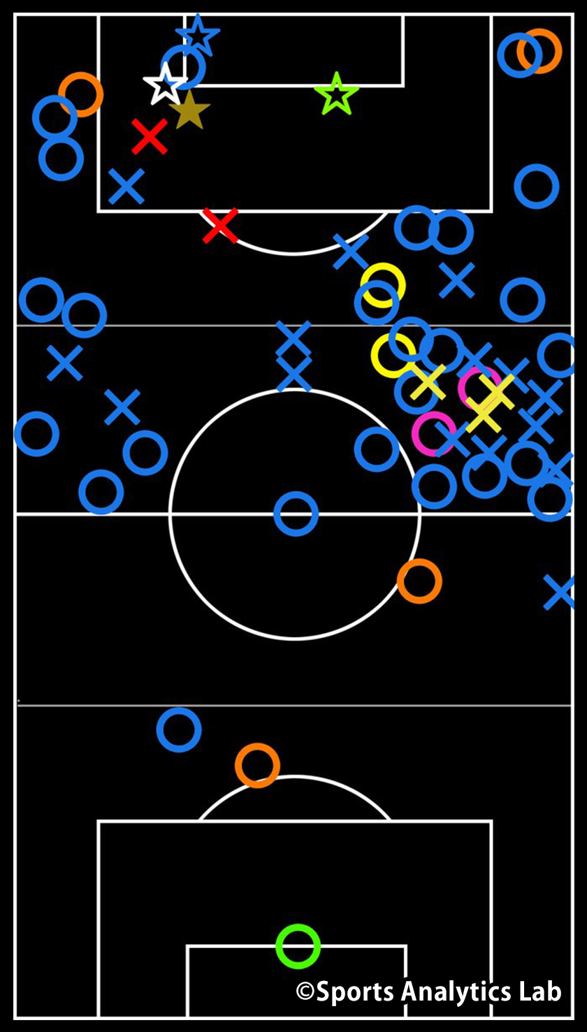 このようにアクションポイントを割り出すと、スタッツだけでは見えない情報が炙り出される。本来であればアクションごとの配点も出したいところだが、かなり細かいスコアリングを設定しないと明確な判断材料とならないため今回は割愛させていただいた。日本のSNSにおけるサッカークラスタの間でも少しずつゲームコーディングやボールタッチポイントの洗い出し、それに伴うインフォグラフィックの作成に勤しむ方が出てきたように思うので、これを継続できるよう私としてもこのような取り組みを引き続き行なっていきたいと思う。