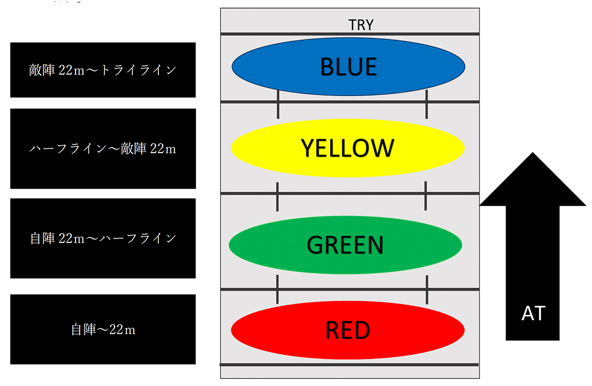以下にスタッツにおける、グラウンドの位置をカラー分けによって使い分けを記述しておきます。