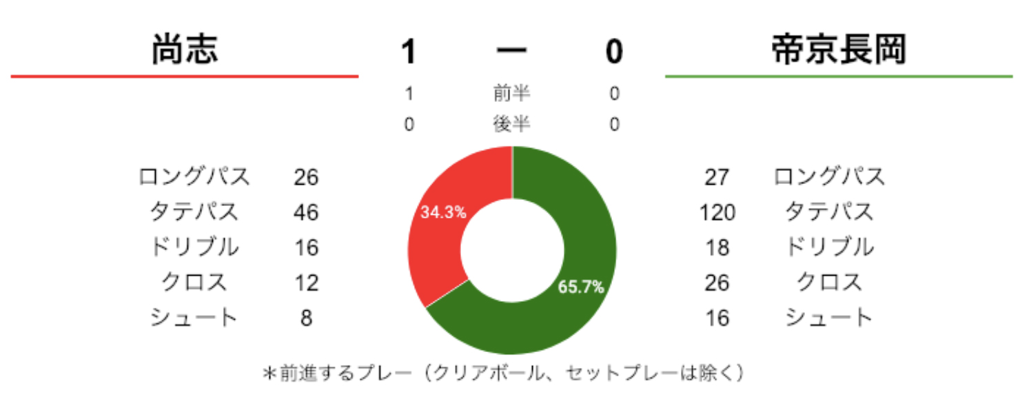 試合は尚志が前半に得点して勝利。帝京長岡が攻め、尚志が守るという試合展開でした。