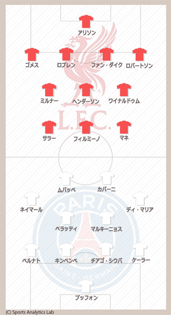 2018-19 CLグループリーグ グループC 5/6節:PSGvsリバプール スタメン