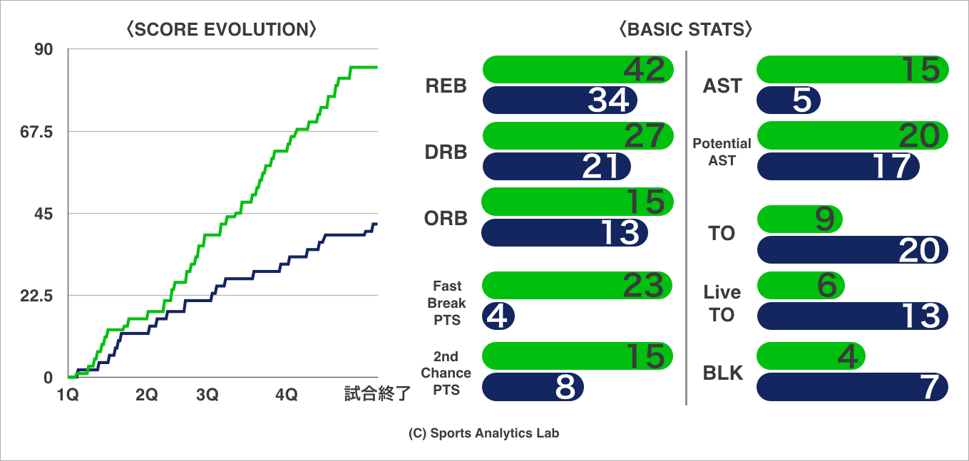 ▼両チームの得点推移とベーシックスタッツ